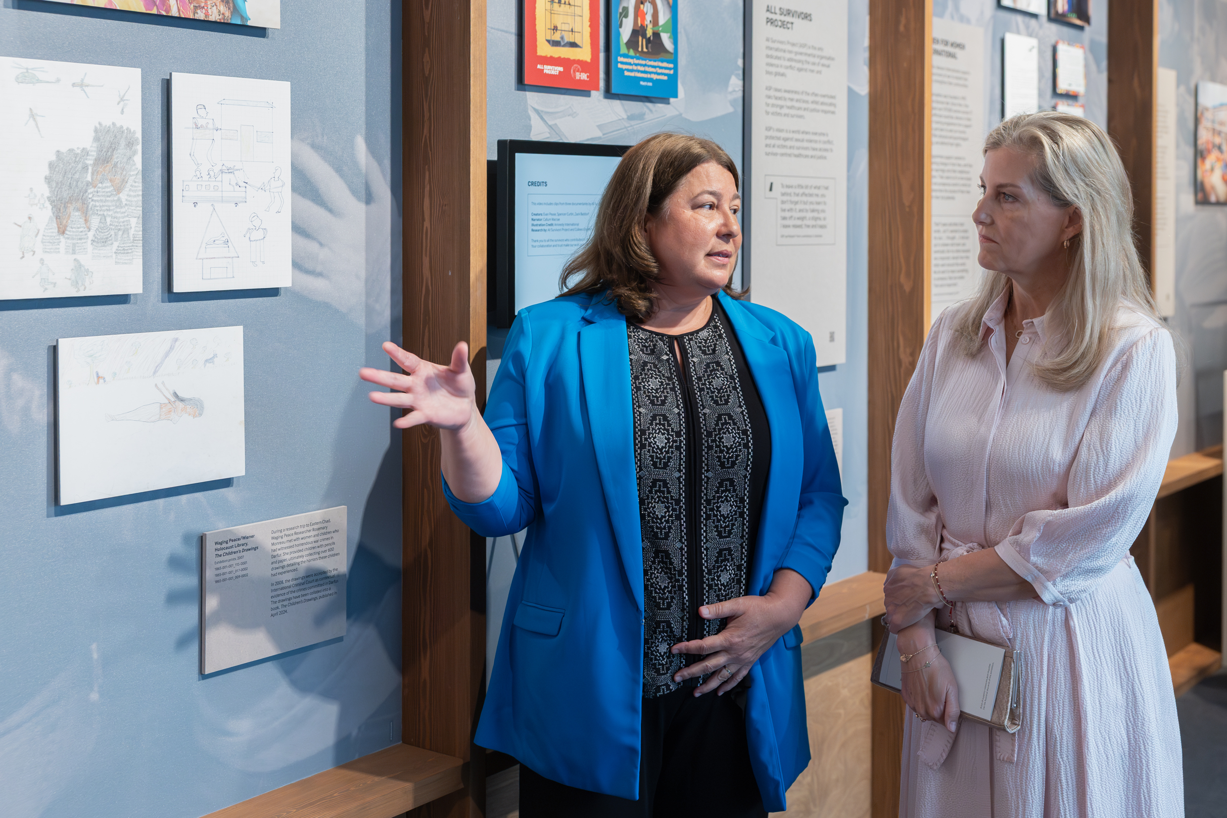 © IWM HRH The Duchess of Edinburgh meets Sonja Miley, Co-Executive Director of Waging Peace as HRH visits Unsilenced: Sexual Violence in Conflict at IWM London (open until 2 November 2025).